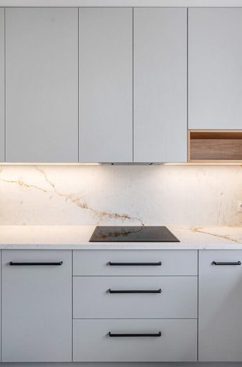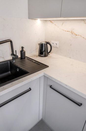 To stosunkowo nowy materiał, który znajduje wielorakie zastosowanie zarówno we wnętrzach jak i na zewnątrz budynków. Jest doskonałym rozwiązaniem w sytuacjach, w których użycie kamienia jest niemożliwe lub znacznie utrudnione ze względu na jego gabaryty i ciężar. Wtedy z pomocą przychodzi spiek kwarcowy. Uzyskuje się go poprzez zmielenie skał granitowych z dodatkiem glinek, topników skaleniowych i barwników – wciąż zachowuje więc naturalny charakter i co najważniejsze – twardość i odporność porównywalne do granitu. Powstaje w procesie wypalania w wielkich piecach hybrydowych w temperaturze 1 100- 1 300°C (stąd jego komercyjna nazwa „spiek”). Tam też jest formowany przy pomocy pras o nacisku kilkunastu a nawet ponad 20t/m2. Zazwyczaj ma postać płyt o grubości kilku do kilkudziesięciu milimetrów. Dzięki temu, wykańczając wnętrza, nie ma konieczności budowania dodatkowych konstrukcji wzmacniających i podtrzymujących. Uzyskujemy natomiast efekt niemal identyczny wizualnie jak przy wykorzystaniu naturalnego kamienia.